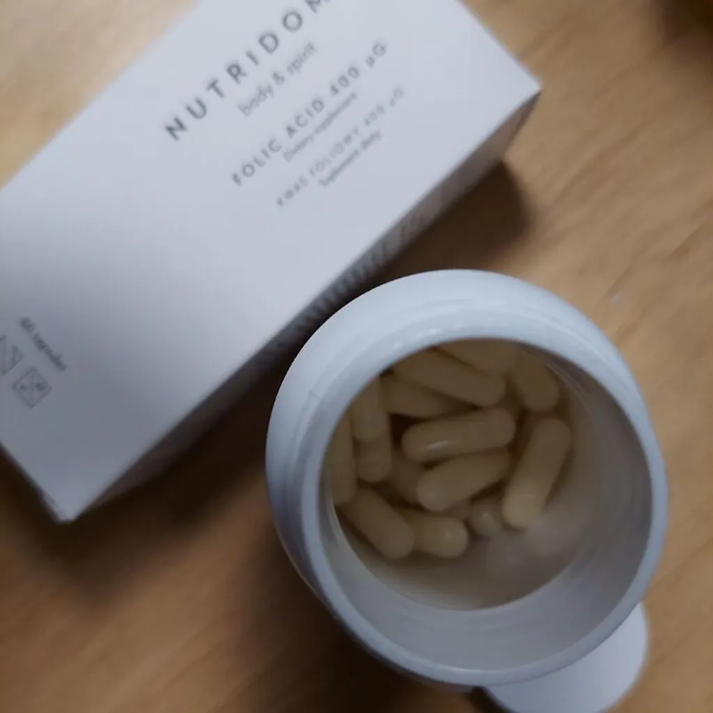 Folna kiselina, poznata i kao vitamin B9, bitan je sastojak za pravilno funkcioniranje tijela, osobito tijekom trudnoće. Dodatak prehrani Nutridome osigurava 800 µg folne kiseline u dnevnoj dozi (400 µg po kapsuli), pružajući najvišu razinu potpore.