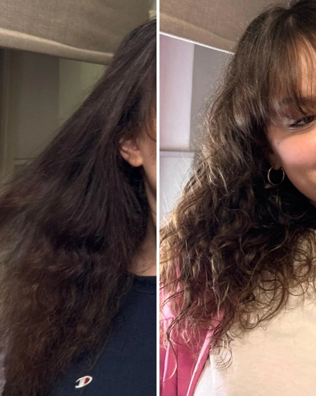 Kovrčava i valovita kosa imaju prirodnu tendenciju stvaranja spiralnih ili valovitih oblika, što ih čini sklonijima isušivanju i kovrčanju. Zbog njihove strukture, sebum se teže raspoređuje po cijeloj dužini vlasi, pa često zahtijevaju dodatnu hidrataciju. Obično su osjetljivije i sklonije lomljenju, što zahtijeva pažljivu njegu i upotrebu proizvoda koji podupiru kovrče. Ova kosa ima veću punoću, ali može izgubiti svoj oblik bez odgovarajuće fiksacije. Pravilna njega pomaže naglasiti njihov prirodni kovrčavi oblik i elastičnost.